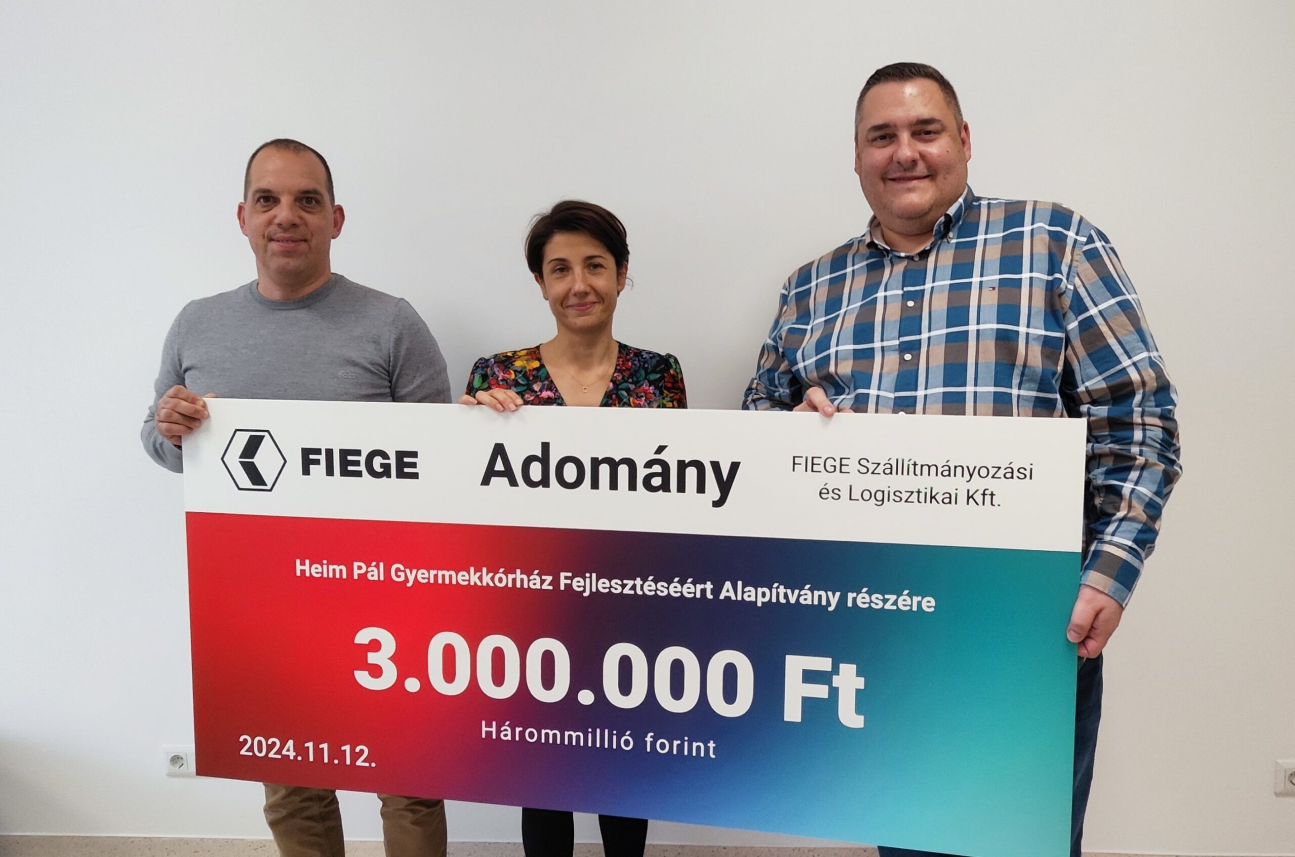 A FIEGE Kft. vezetősége 2024. decemberében az ünnepekre készülve rendhagyó döntést hozott. Ahelyett, hogy hagyományos karácsonyi ajándékokkal köszöntöttük volna partnereinket, 3 millió forintot adományoztunk a Heim Pál Gyermekkórház Fejlesztéséért Alapítvány részére, hogy ezzel támogassuk a kis betegek gyógyulását és a kórház munkáját.